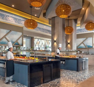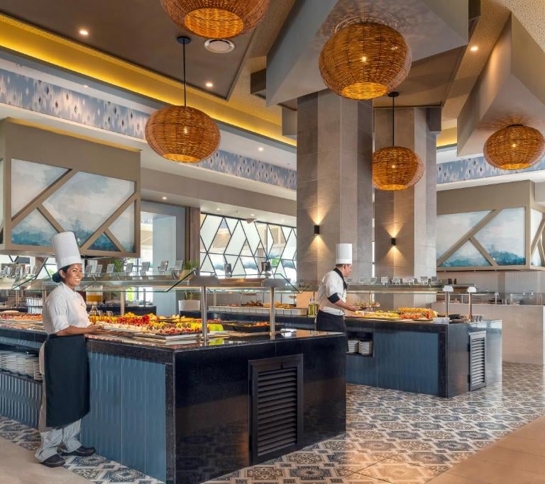 6 restaurantes e 9 bares com sabores internacionais, buffet com cozinha ao vivo e drinks especiais.
